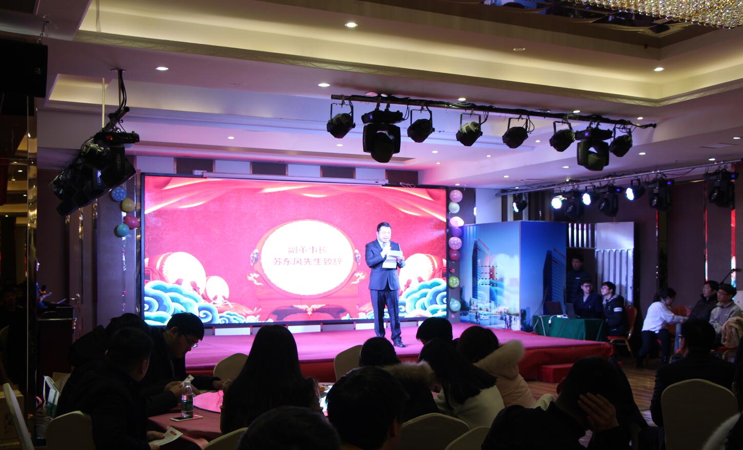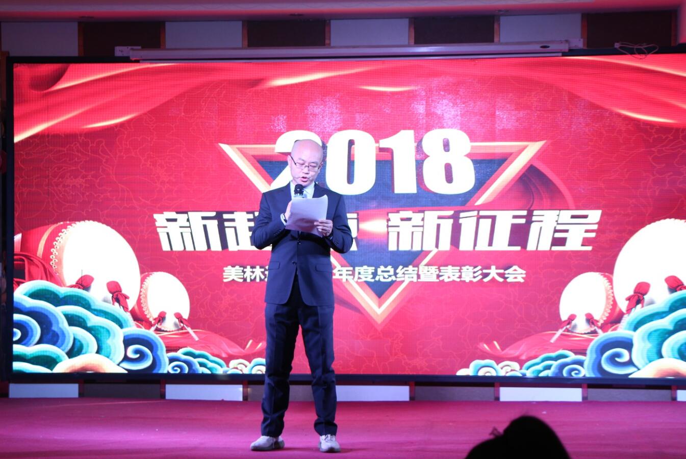 凱歌辭舊歲,駿狗迎新春。伴隨著2018年的歡快腳步,美林通的全體家人也迎來了激動人心的新春年會。2月10日下午3點,鄭州美林通全體員工齊聚一堂,在鄭州御璽國際酒店五樓2號宴會廳,隆重召開2017年年度總結暨表彰大會。 公司副董事長蘇東風先生首先代表公司,發表了熱情洋溢的致辭,對公司一年來的發展足跡和美林通的小伙伴們為公司成長所付出的辛勤努力給予高度評價。 全員觀看了由公司設計部精心制作的上市掛牌紀錄片,短短幾分鐘,便帶動了全場的熱烈氣氛,美林通的戰略、使命、理念清晰展現在大家面前,讓人心潮澎湃。