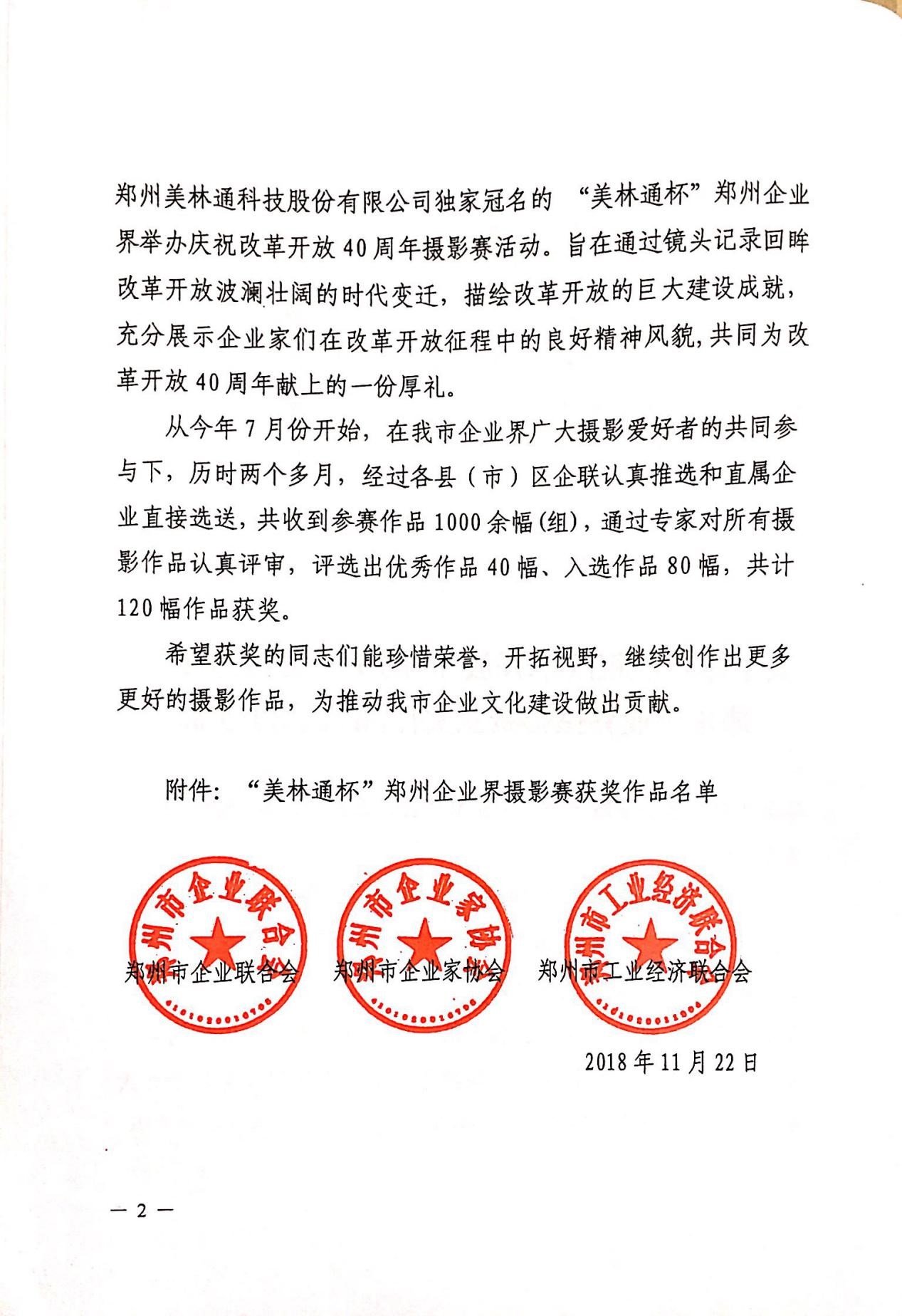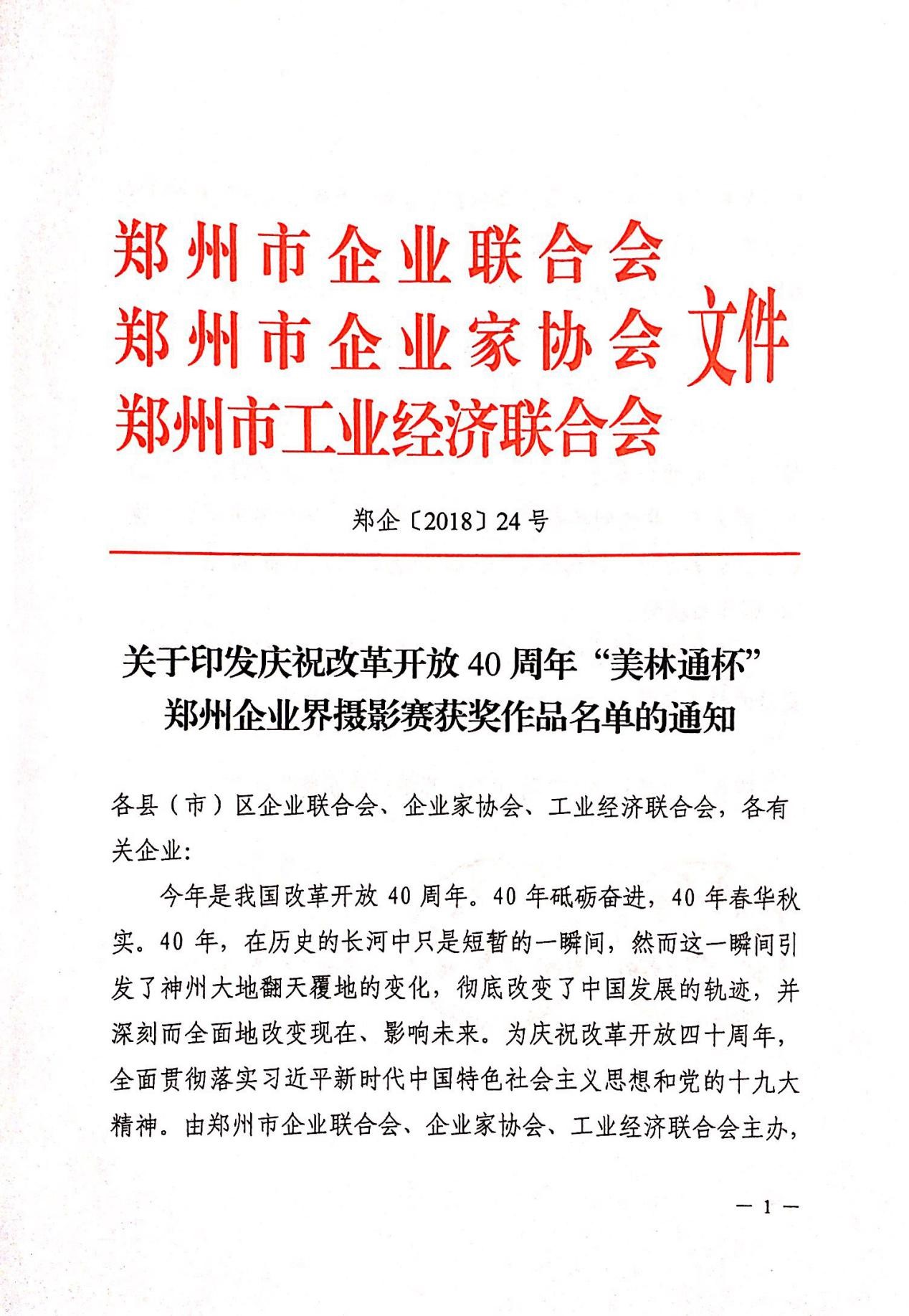 附:關于印發慶祝改革開放40周年“美林通杯”鄭州企業界攝影賽獲獎作品名單的通知