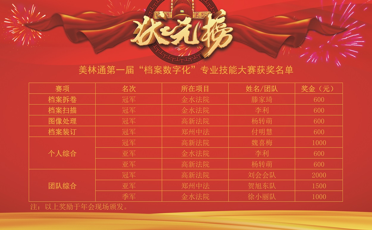 本次技能大賽分為兩個比賽階段,比賽內容囊括檔案拆卷、檔案掃描、圖像處理、圖像質檢、檔案裝訂等五個檔案數字化的主要流程。 第一階段以個人為單位,選手分別對檔案進行拆卷、掃描、處理、裝訂。第二階段以團隊小組為單位,四人一組,在限定時間內協同完成檔案的拆卷、掃描、處理、質檢及裝訂的操作。整場比賽綜合參賽選手或參賽團隊的比賽時長及卷宗質量進行評分。 隨著大屏幕計時器的開啟,第一輪參加檔案拆卷的6名選手便“手起剪落”,“唰唰唰”地翻開了手中的卷宗,順頁、裱糊一氣呵成。 ▲美林通第一屆“檔案數字化”專業技能大賽精彩回放 ![]() ![]() ![]() ![]() 在團隊綜合競賽中,各組參賽選手高度重視、爭分奪秒,動作迅速、操作連貫,隊友之間齊心協力,配合默契,最終,鄭州高新法院項目部的劉會會團隊以25分39秒的優異成績拔得頭籌。 附:獲獎人員名單 ![]() 通過舉辦美林通第一屆“檔案數字化”專業技能大賽,實現“以賽促優”之目的,參賽選手在競賽中拼技能、展風采、善協作,充分展現美林通人團結奮進、勇于拼搏的精神風貌。 本次大賽全面檢驗了檔案數字化員工的工作技能與實際操作水平,提升了檔案數字化員工鉆研數字化業務技能、錘煉檔案工作本領、調動了檔案工作能力的主動性和積極性,為項目員工創造了一個展現自我、拼比技能、實現價值的競技舞臺。同時,比賽的舉辦有利于公司通過賽事挖掘和發現人才,助推美林通高技能檔案數字化人才隊伍建設更加完備。 特別鳴謝: 檔案工程部:王宗普、張靜靜、王玉萍、郭淑英、郭振雷、孫奈輝、張文杰 研發中心:范林娜、王俊鵬、李西超、張彬彬、劉海歌、孔源 檔案數據事業部:孟衛需、郭珈誠 市場部:孫科、李玲玉、付永棟 人力資源部:張賀琪、宋保華 后勤保障部:劉張星 外聯合作部:閻榮婭 商務部:王博 總經辦:員輝